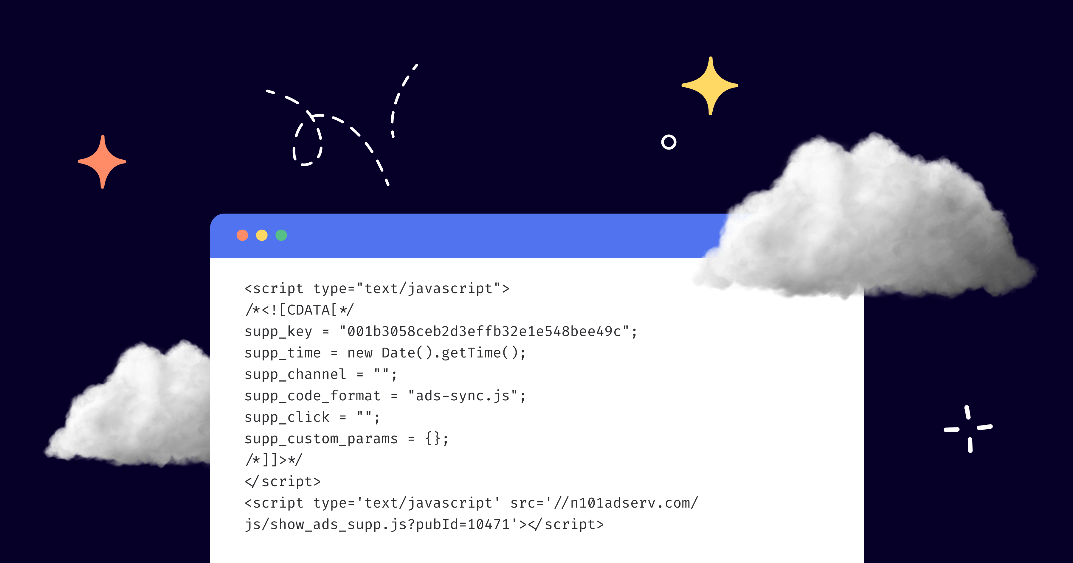Each ad tag defines exactly how the ad should be served on this particular website — it contains data about the creative ad format, size, category, and other requirements. The snippet can also be put into the header or iFrame wrapper to isolate it from the primary website script.